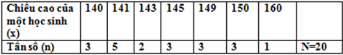 Từ bảng tần số ta thấy có 2 học sinh có chiều cao 143cm.