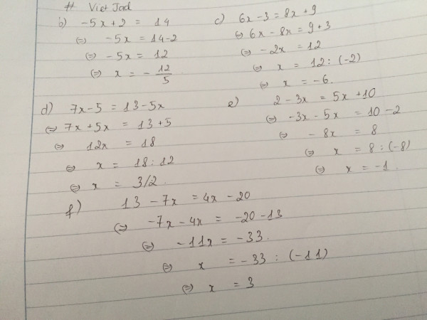 b) -5x +2 ==14