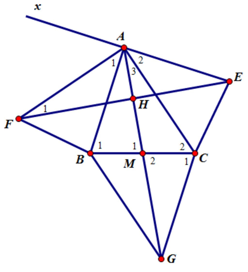 Cho ∆ABC, trung tuyến AM . Trên nửa mặt phẳng chứa đỉnh C bờ là đường thẳng AB dựng đoạn AE vuông góc với AB và AE=AB. Trên nửa mặt phẳng chứ đỉnh B bờ là đường thẳng AC dựng đoạn AF vuông góc với ACvà AF=AC. Chứng minh rằng