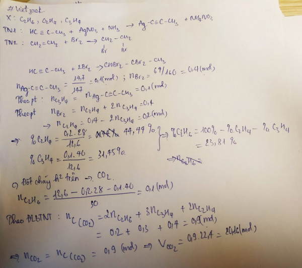 . Thí nghiệm 1 : cho X qua dung dịch AgNO3/NH3 dư, sau phản ứng thu được 14,7 gam kết tủa màu vàng