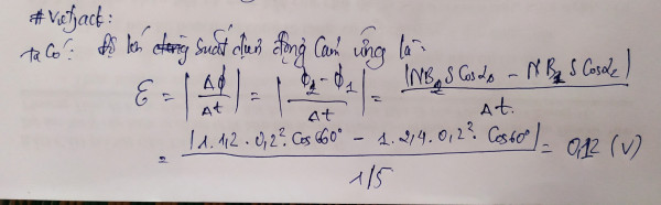 1 khung dây hình vuông cạnh 20cm nằm toàn bộ trong từ trường đều và hợp vs các đường cảm ứng 1 góc 30°. Trong tg 1/5s, cảm ứng từ trường giảm từ 2,4T về 1,2T. Suất điện động cảm ứng của khung dây trong tg đó có độ lớn là bao nhiêu?