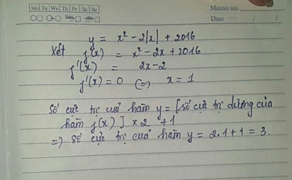 g'=2x-2=0 thì x=1 -> g có một cực trị dương