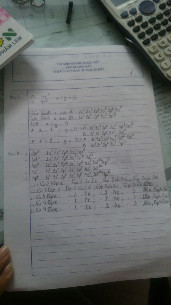 Bài 7 Cấu hình e lớp ngoài cùng của nguyên tố A dạng , còn cấu hình lớp ngoài cùng của nguyên tố B dạng . Biết x + y = 5 . Hãy viết cấu hình e của nguyên tố A và B.