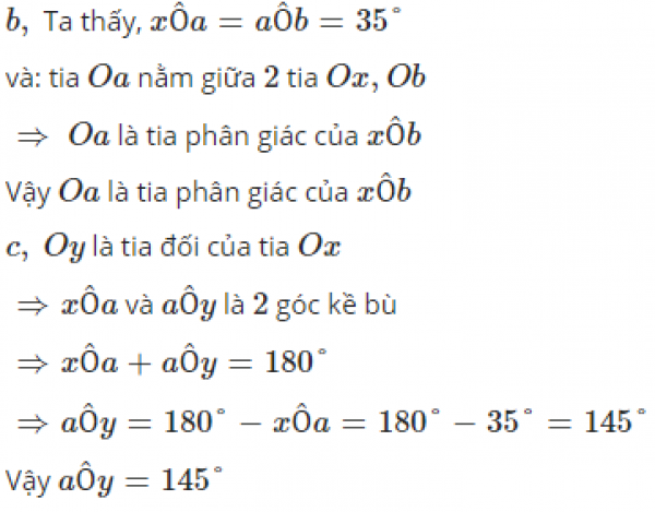 c)Vẽ tia Oy là tia đối của tia Ox. Tính số đo góc aOy