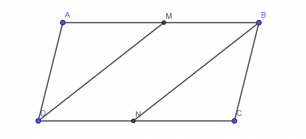 cho hình bình hành ABCD , đường phân giác của góc D cắt AB tại M , phân giác của B cắt CD tại N . Chứng minh rằng :