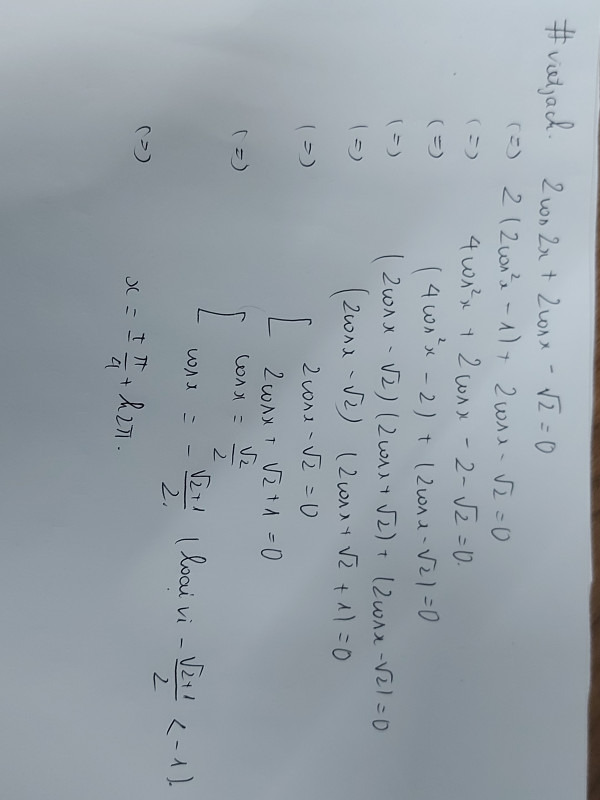 Nghiệm của phương trình 2cos2x +2cosx -cân2 =0