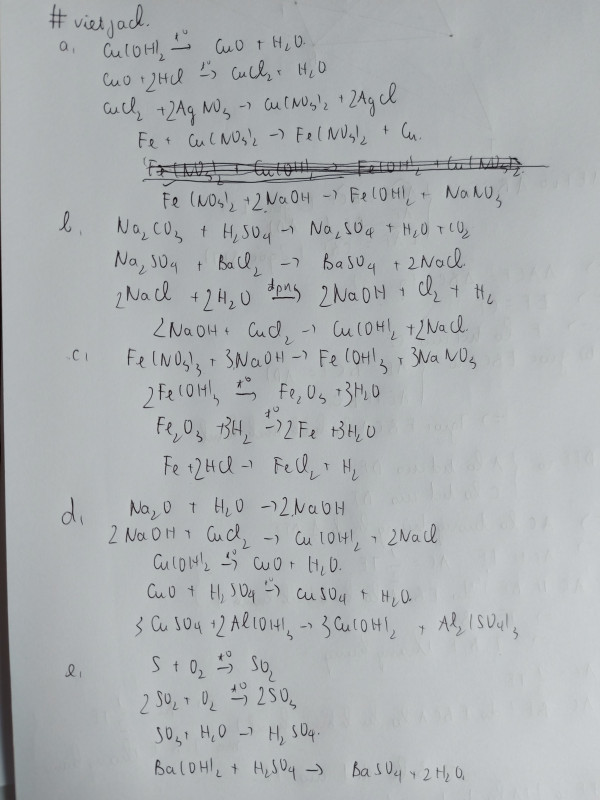 a) Cu(OH)2------(1)------->CuO--------(2)-------> CuCl2---------(3)---------> Cu(NO3)2---------(4)-----> Fe(NO3)2 ---------(5)------> Fe(OH)2.