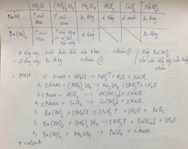 Phân biệt các dung dịch sau NH4Cl, (NH4)2SO4, Na2SO4, AlCl3, CuCl2, NaNO3