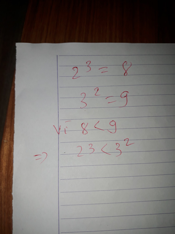 ->Vì 8,9 nên 2 mũ 3 < 3 mũ 2
