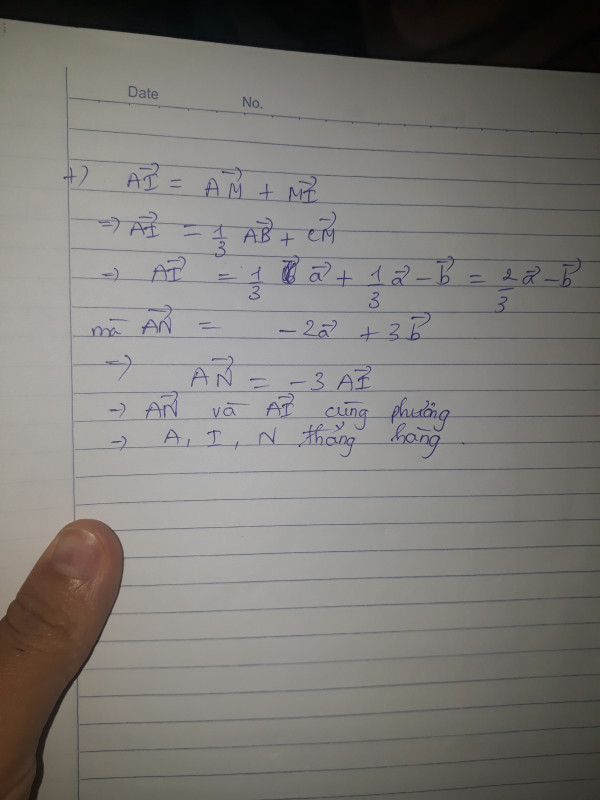b, gọi I là điểm thỏa mãn vectơ MI bằng vectơ CM . cm I,A,N thẳng hàng