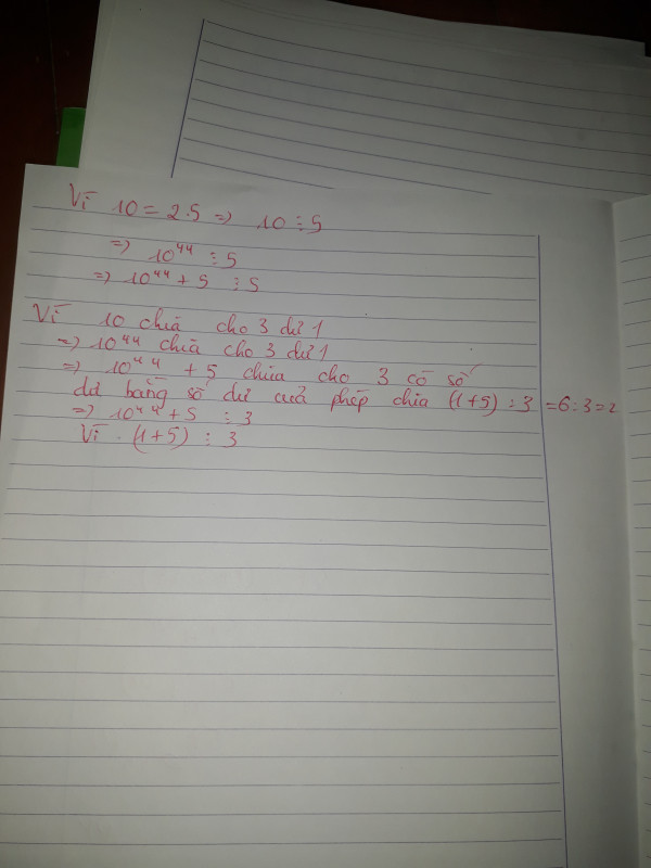chứng tỏ rằng 10 mũ 44 + 5 vừa chia hết cho 3 , vừa chia hết cho 5