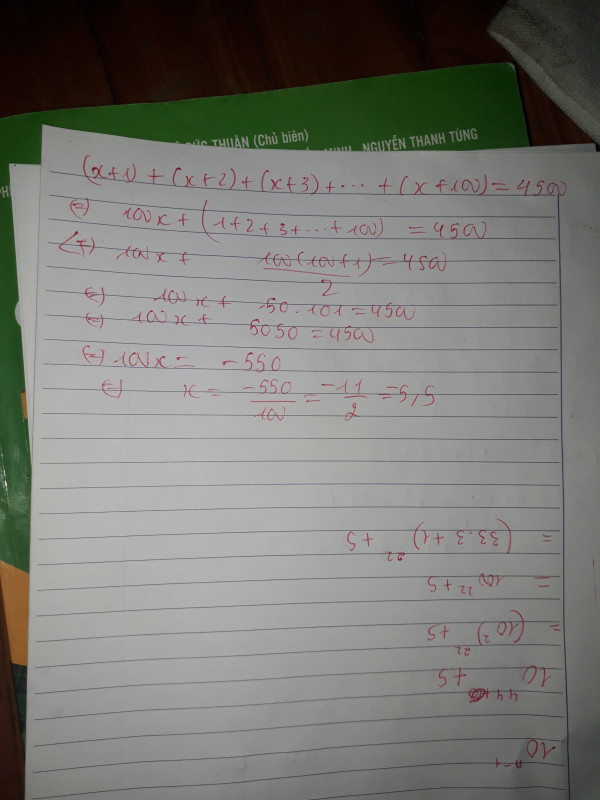 ( x + 1 ) + ( x+2 ) +( x +3) + ..............+( x+100) =4500