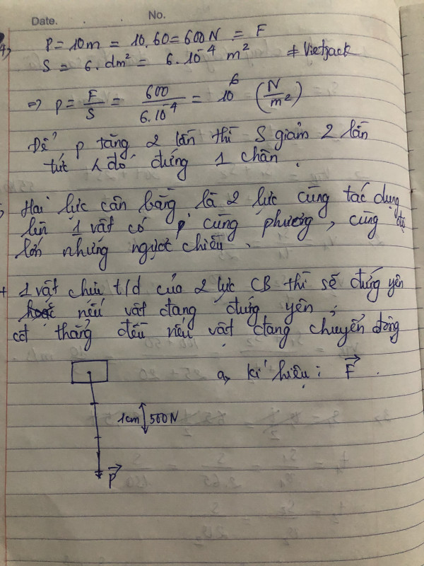 Câu 4: Một người có khối lượng 60 kg, diện tích của cả 2 bàn chân là 6dm2. Tính áp suất của người này lên trên mặt đất. Theo em, người đó phải làm gì để áp suất nói trên được tăng lên gấp đôi
