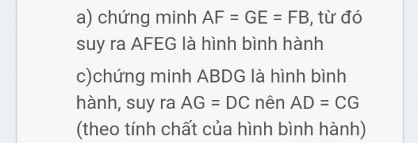 b) Chứng minh tứ giác BFGE và AGEF là hình bình hành.