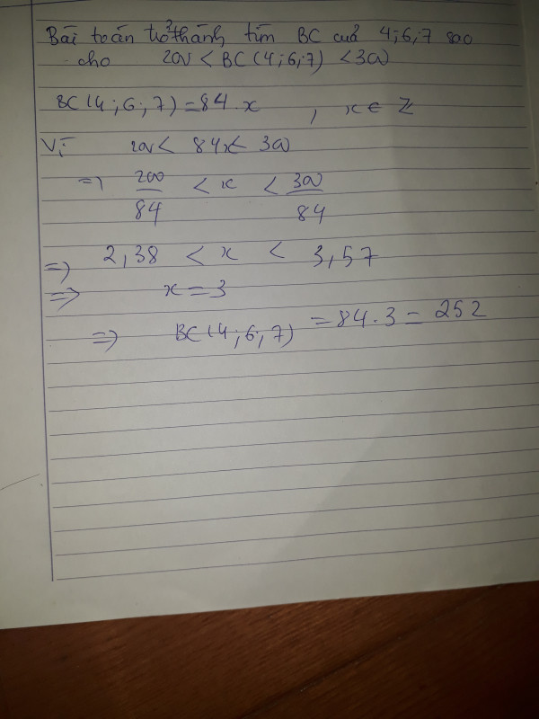 Những số nào từ 200 đến 300 chia hết cho cả 4 6 7.