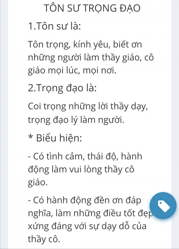 Tôn sư: tôn trọng, biết ơn đối với những người làm thầy giáo, cô giáo ở mọi lúc mọi nơi