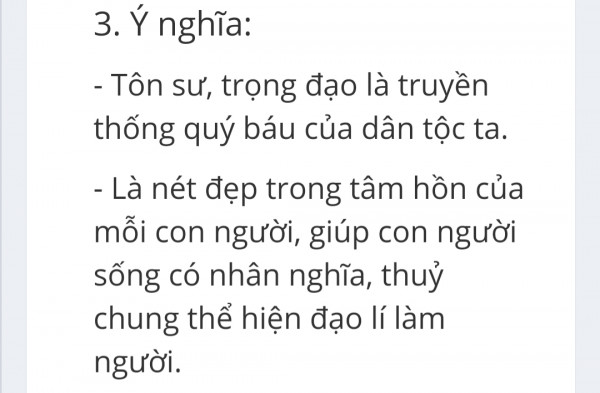 + Coi trọng những lời thầy dạy, trọng đạo lý làm người.