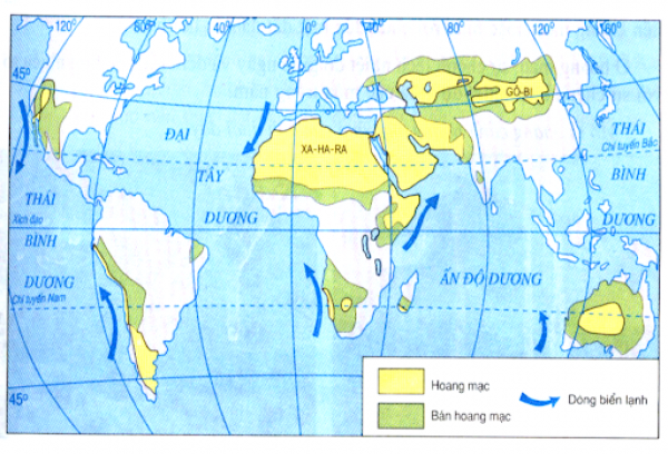 Vẽ hình minh họa sự phân bố của môi trường hoang mạc