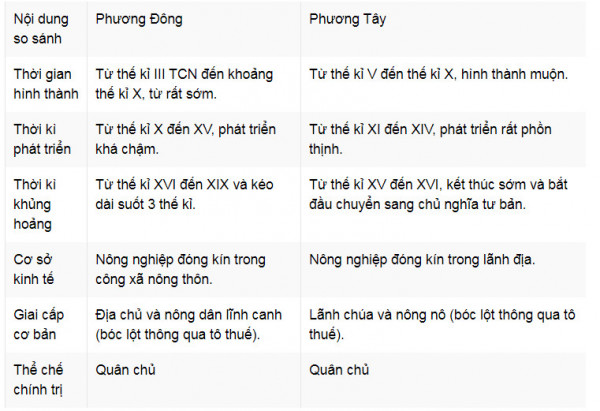 So sánh xã hội phong kiến ở Phương Đông và xã hội phong kiến ở Phương Tây ( Quá trình hình thành và phát triển , kinh tế ,xa hội , phương thức bóc lột , thể chế nhà nước )