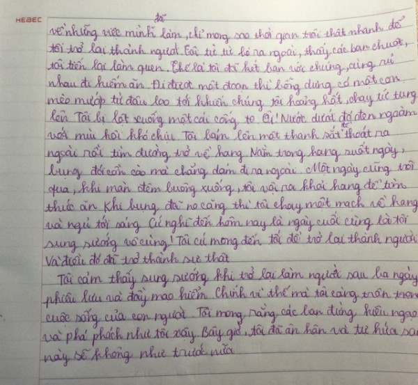 Qua ba ngày đêm sông lang thang ngoài đường, thấm thía sự khổ cực khi không được bố mẹ chăm sóc, không được bạn bè yêu mến, tôi đã hiểu ra rằng phải biết nhận lỗi khi làm sai việc gì đó. Cũng từ đó, tôi luôn cố gắng chăm ngoan, học giỏi để trở thành tấm gương tốt cho em gái và làm cha mẹ vui lòng.