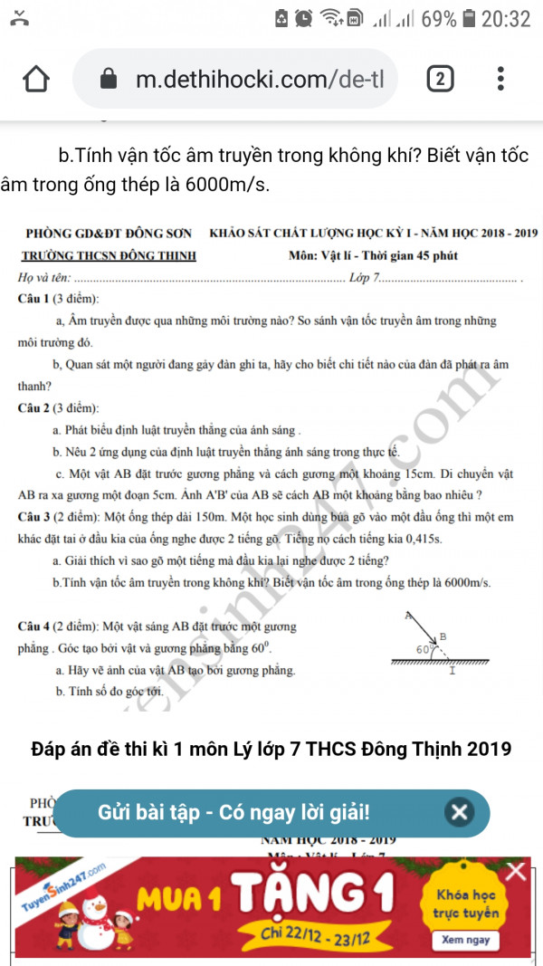 cần gấp đề thi HK1 vật lý 7