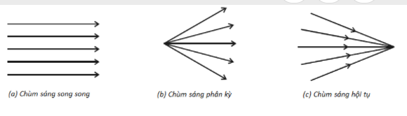 Có 3 loại chùm sáng :+ Chùm sáng song song : Gồm các tia sáng không giao nhau trên đường truyền của chúng.