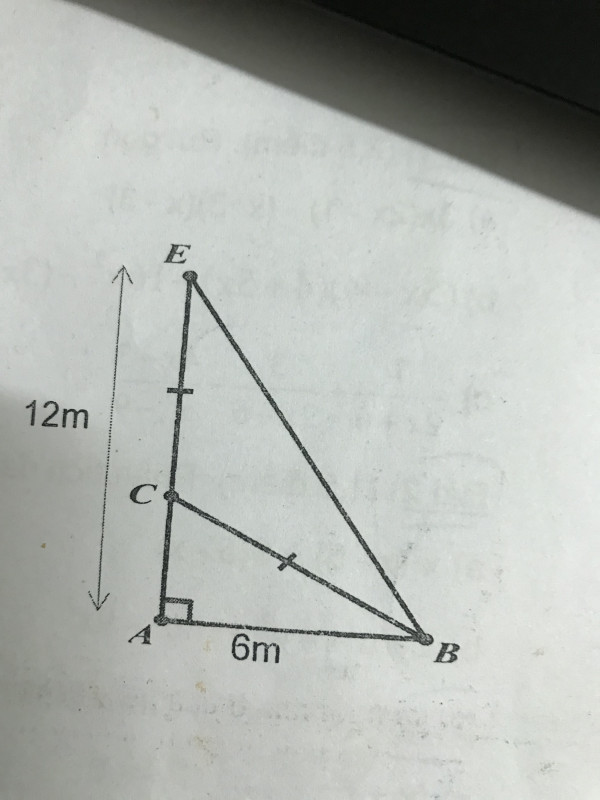 mưa bão làm cho một cây cao 12m bên đường bị gãy ngang thân, biết ngọn cây gãy cách gốc cây 6m. em hãy tính xem khoảng cách AC từ điểm gãy đến gốc cây là bao nhiêu.