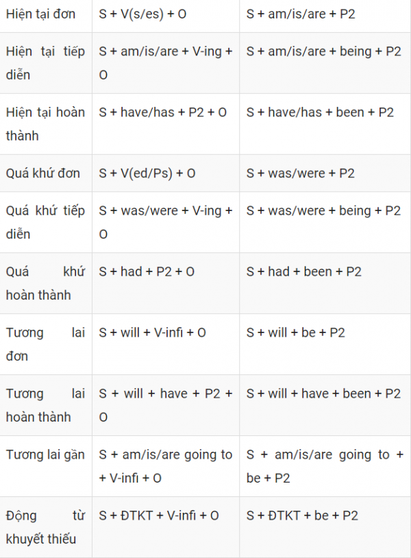 anh em viết hộ mình công thứ câu bị động với mik quên hết rùi
