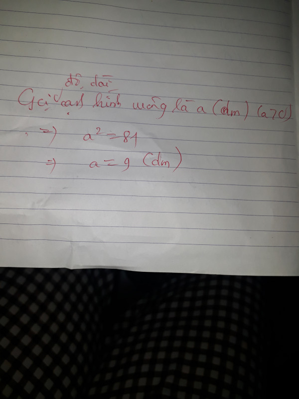 Hình vuông có diện tích là 81dm2. tính cạnh hình vuông đó