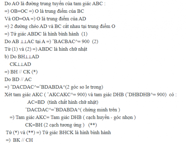 Tứ (*) và (**) =) Tứ giác BHCK là hình bình hành