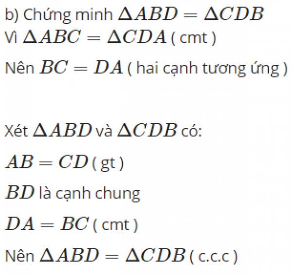b, Chứng minh tam giác ABD = tam giác CDB
