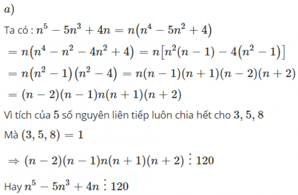 a) n⁵ - 5n³ + 4n chia hết cho 120 với mọi số nguyên n.