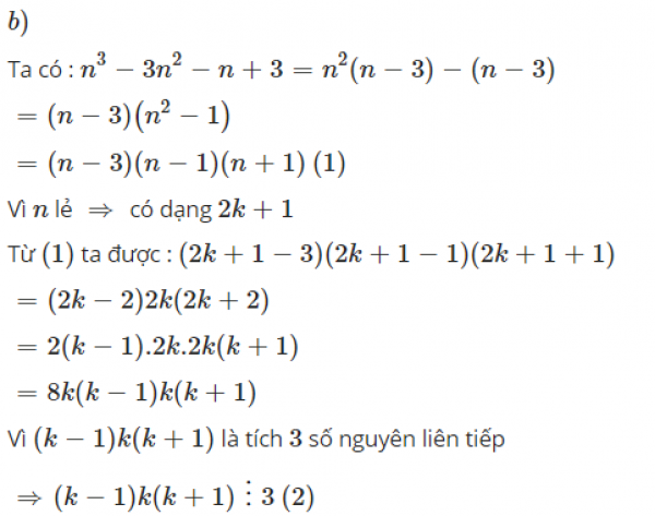 b) n³ - 3n² - n + 3 chia hết cho 48 với mọi số lẻ n.