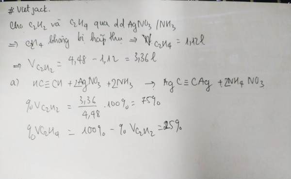 Cho 4,48 lít nhôm gồm etilen phẩy axetilen phản ứng vừa đủ với 56 g dung dịch brom a viết phản ứng b tính phần trăm thể tích khí