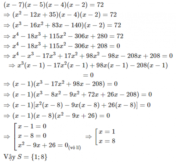 Giải phương trình sau: (x - 7)(x - 5)(x - 4)(x - 2) = 72