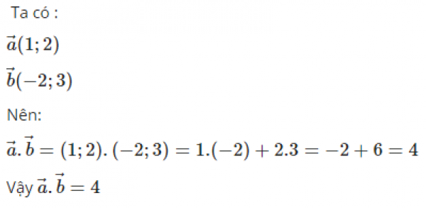 Cho a→(1;2), b→(-2;3). Tích vô hướng a→.b→ bằng?