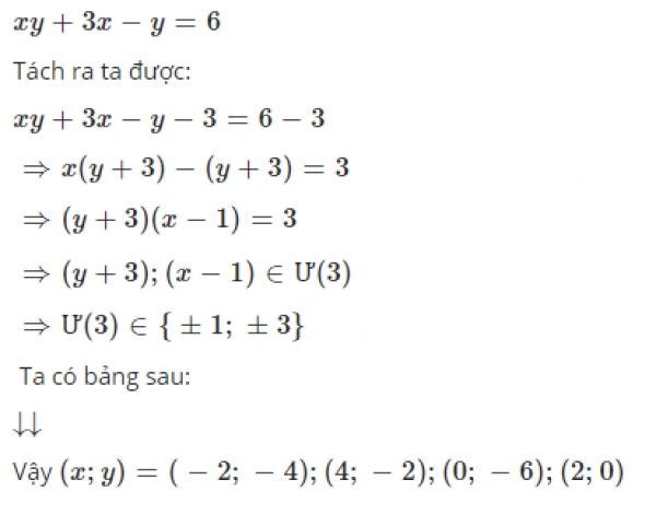 Tìm x, y nguyên biết: xy + 3x - y = 6