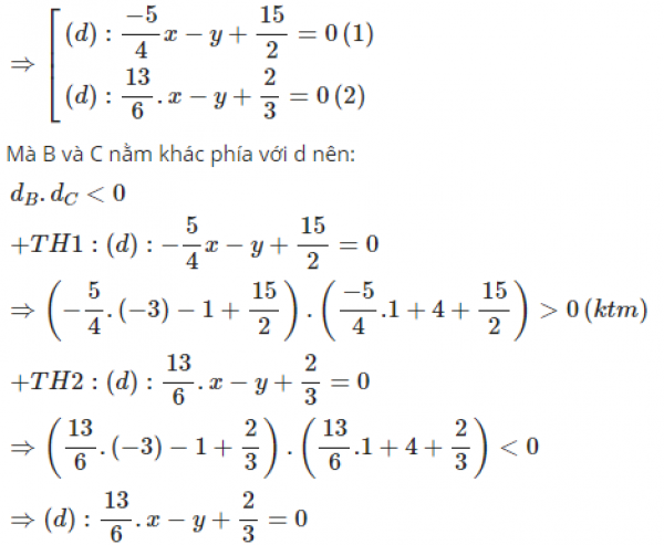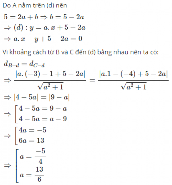 Gọi phương trình đường phân giác trong qua A của tam giác là (d) y=a.x+b.
