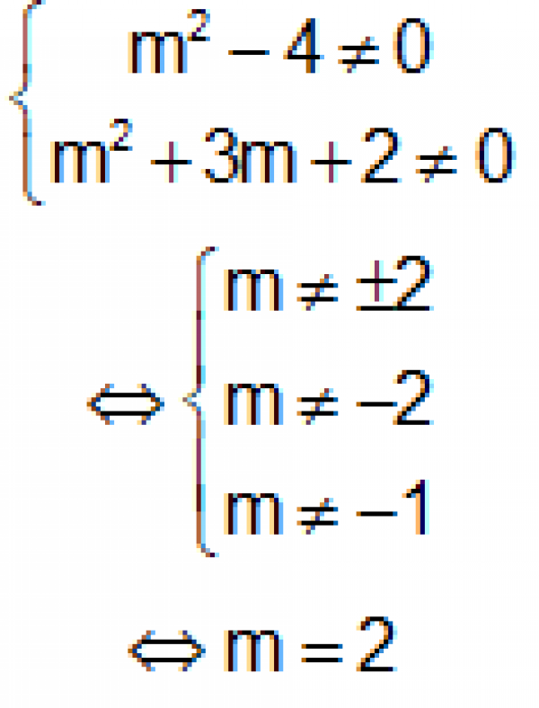 ⇔(m2−4)x=m2+3m+2(*)⇔m2-4x=m2+3m+2(*)