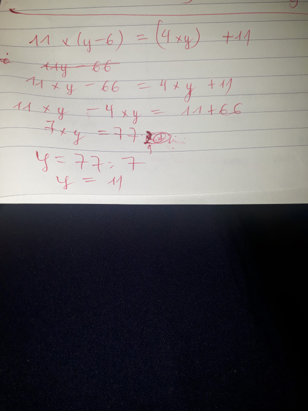 11 x ( y - 6 ) =(4 x y) +11