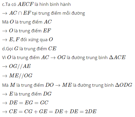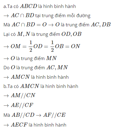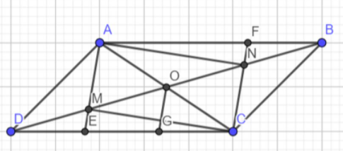 Cho hình bình hành ABCD. Gọi O là giao điểm của 2 đường chéo M,N là trung điểm của OD và OB. Gọi E là giao điểm của AM và CD. F là giao điểm của CN và AB.