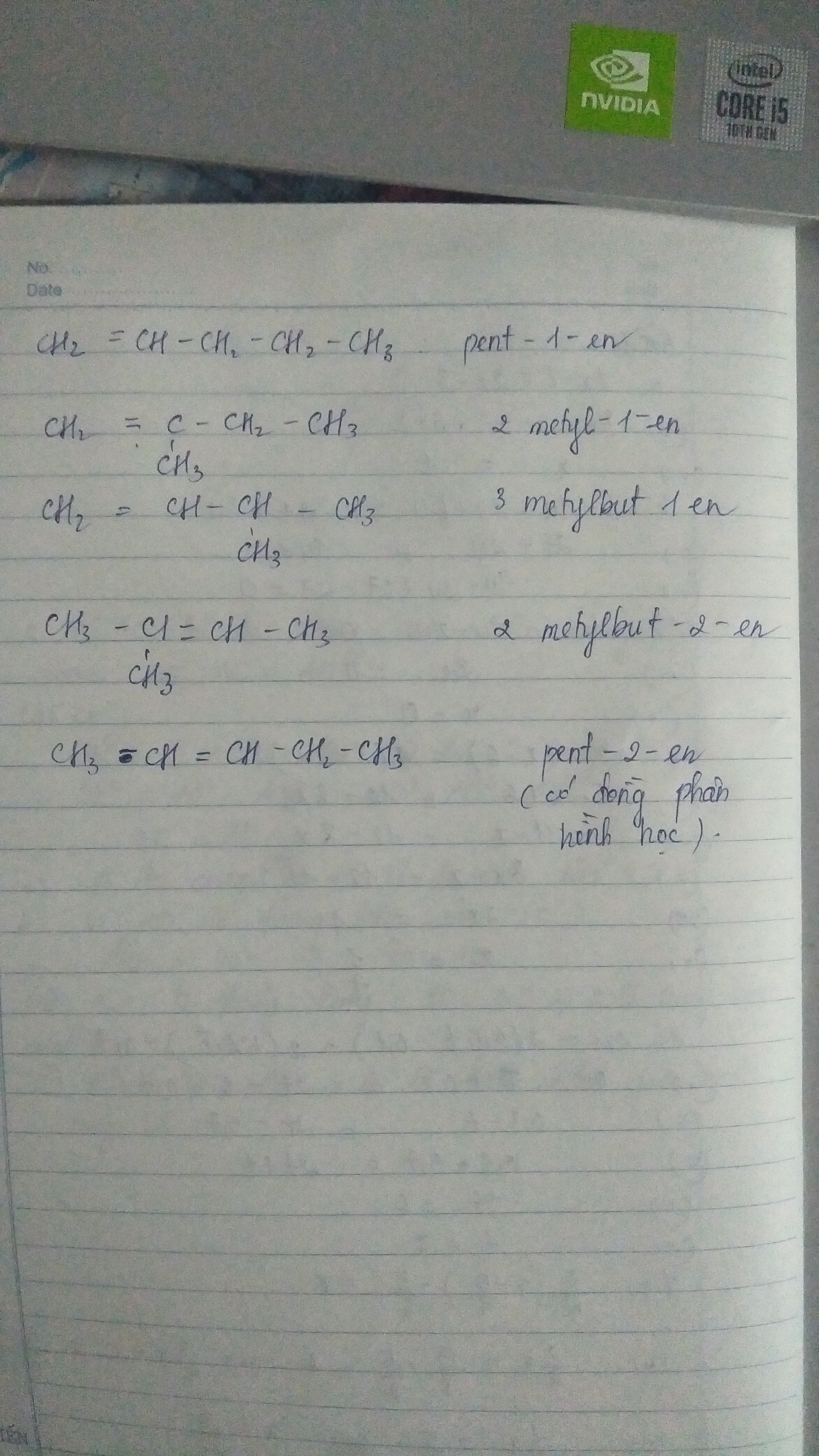 Viết đồng phân và gọi tên của C5H10 (bài 29 anken nhé) 😥