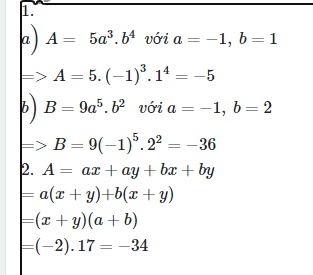 a) A= ax + ay + bx + by biết a+b = -2, x + y =17