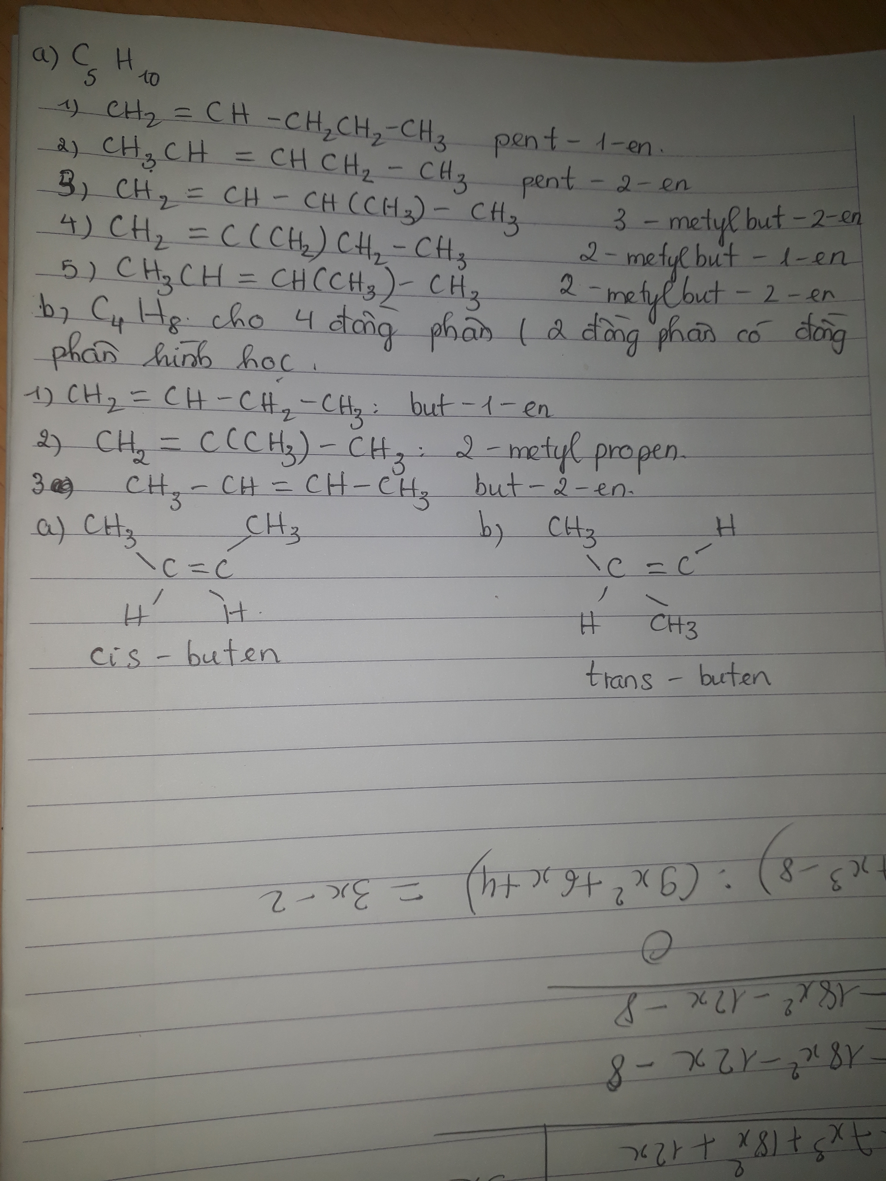 Câu 1: Viết các đồng phân cấu tạo của anken C4H8, C5H10 và gọi tên chúng.