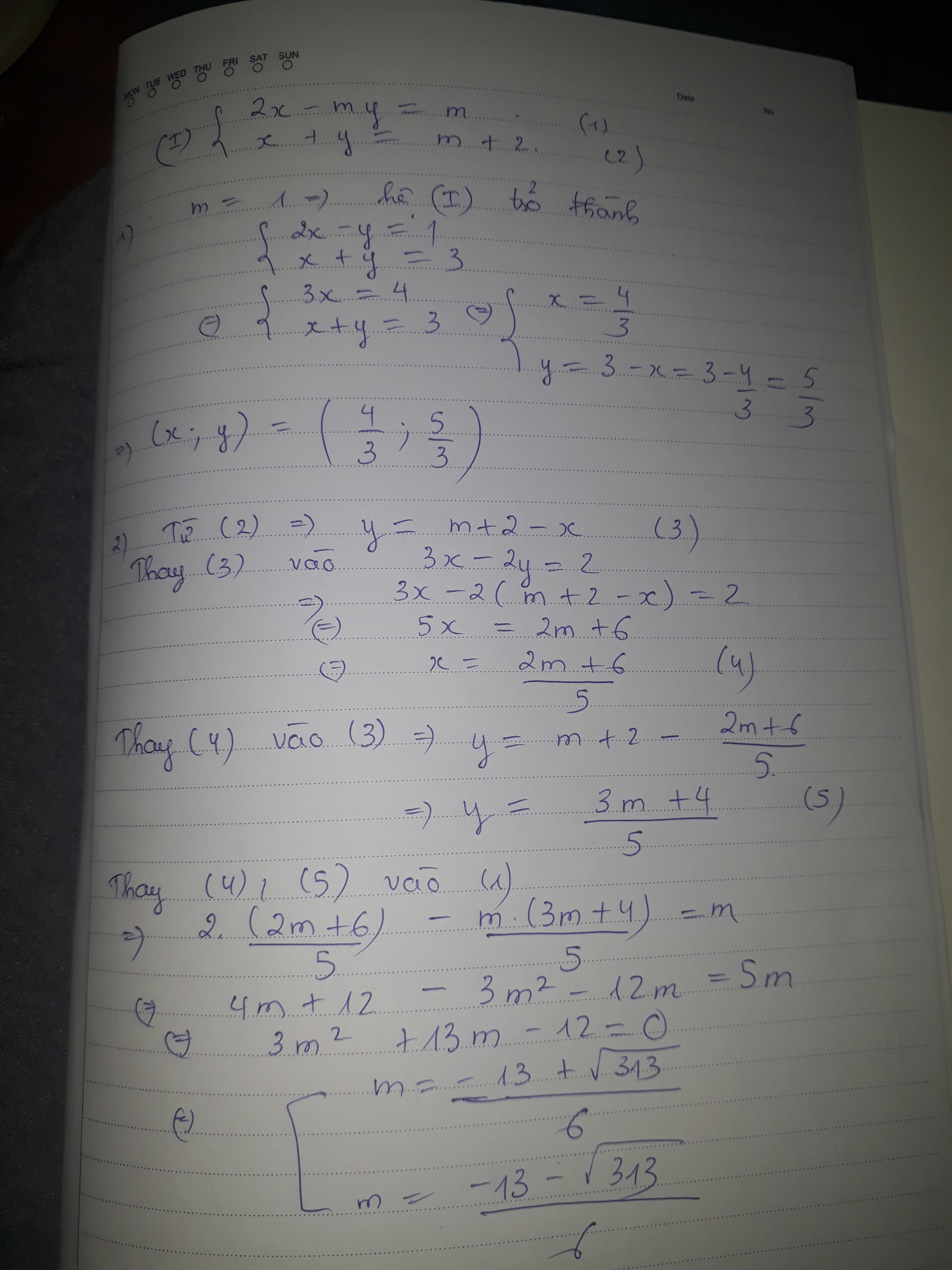 2, gọi nghiệm duy nhất của hệ là(x;y). Tìm m thoả mãn 3x-2y=2.