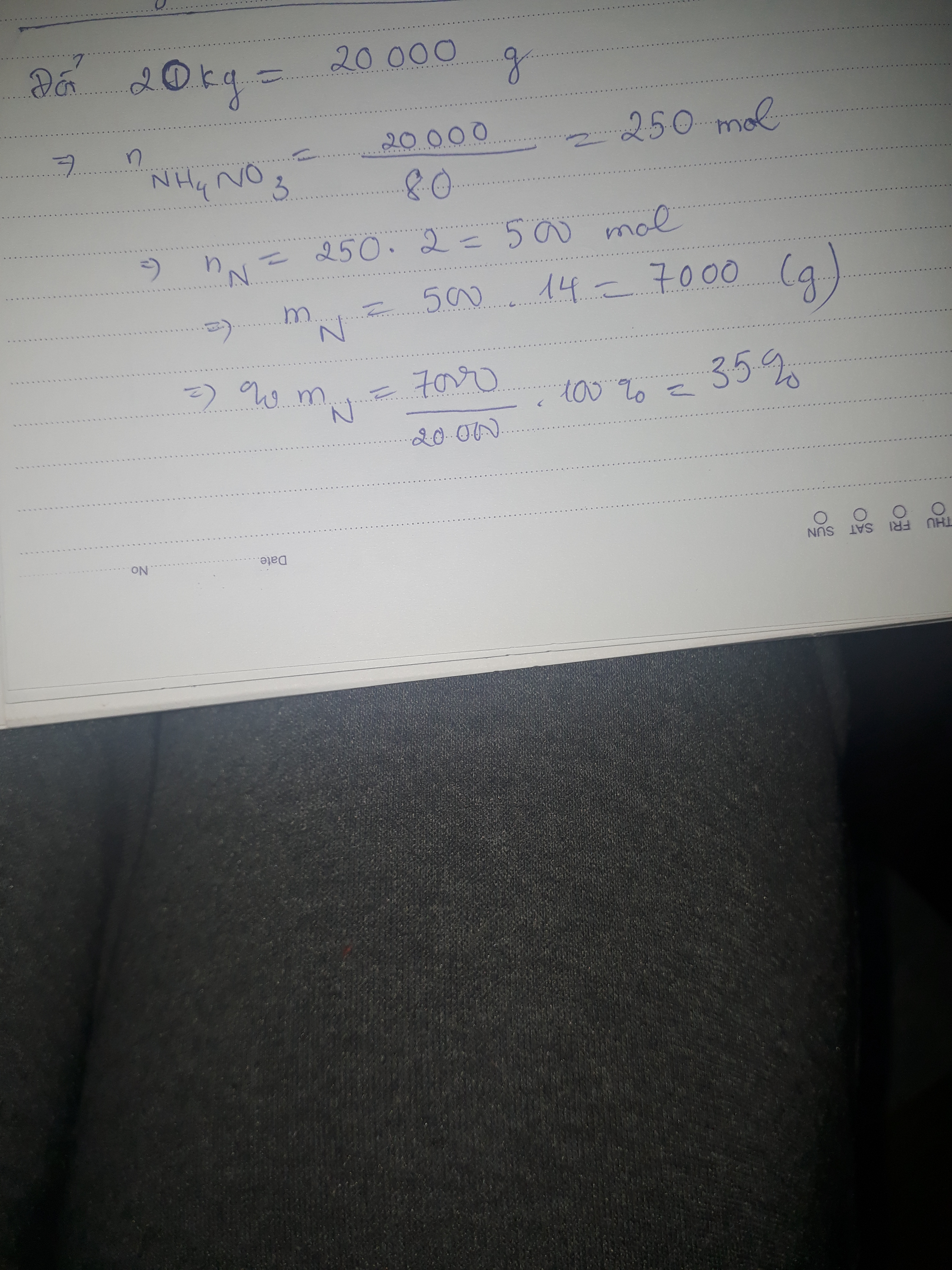 Tính phần trăm khối lượng nguyên tố N trong 20 kg .