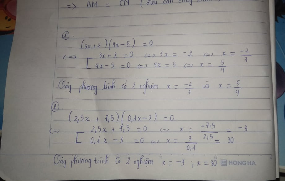 Giải các phương trình (2,5x + 7,5)( 0,1x -3)=0