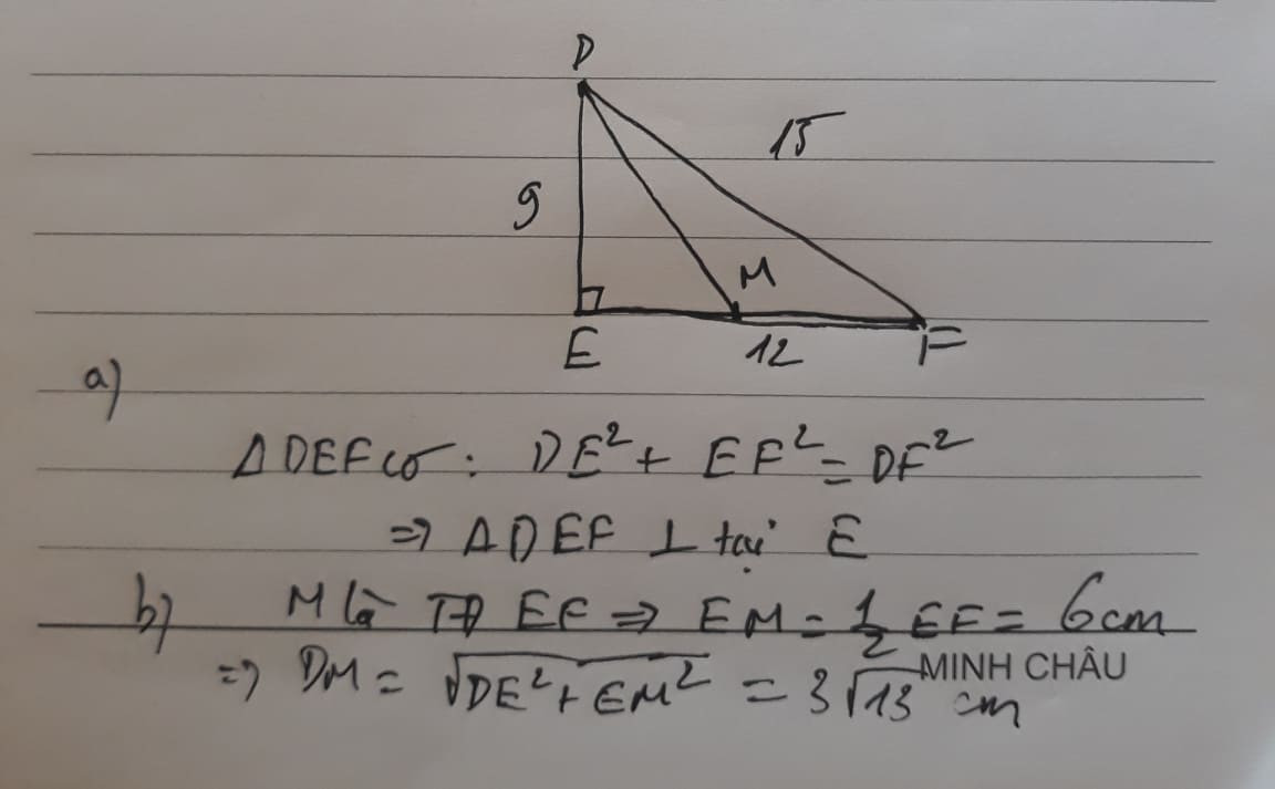 cho tam giác DEF có DE=9cm EF=12cm DF=15cm