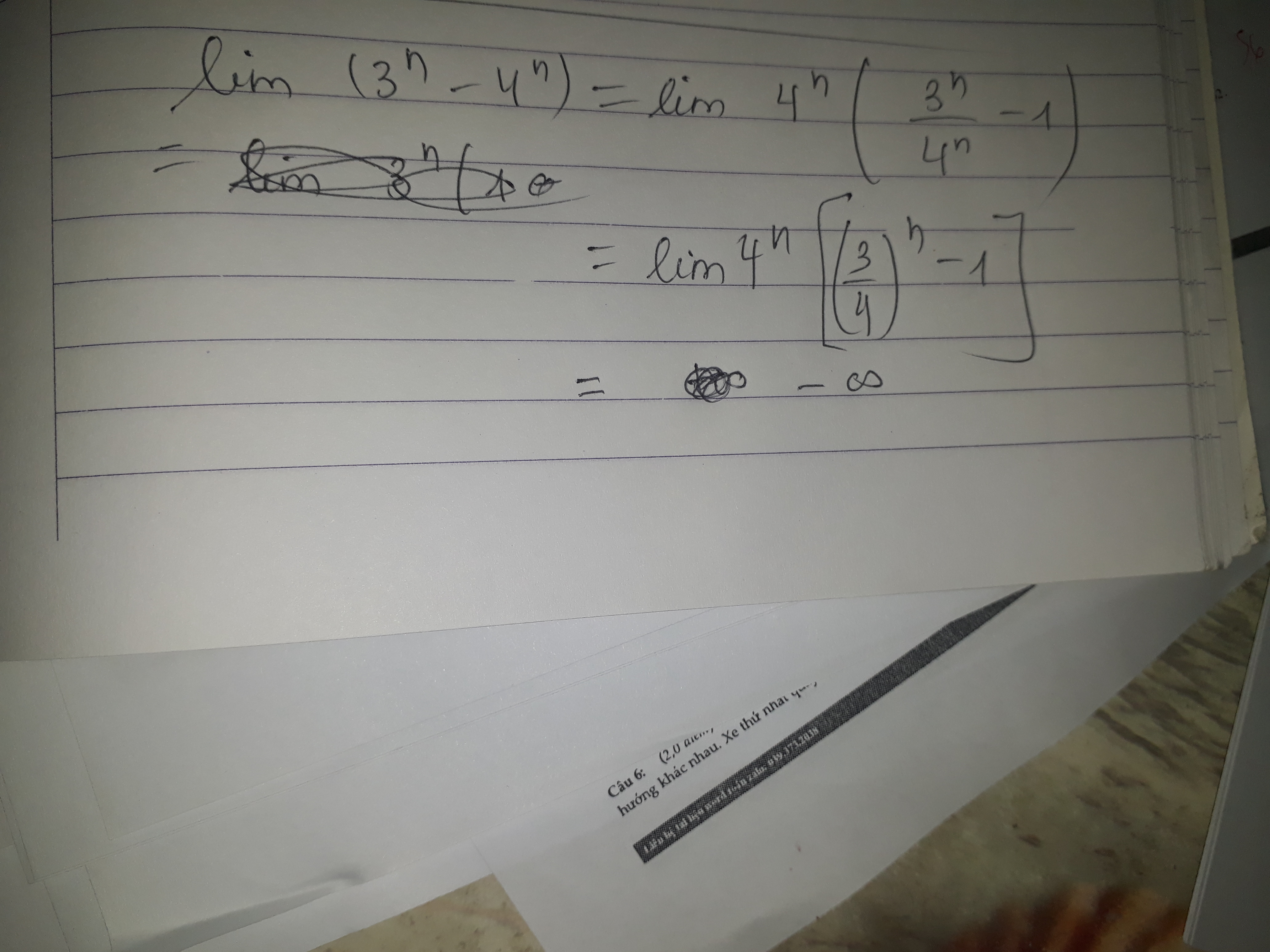 Tính giới hạn: Lim(3^n-4^n)