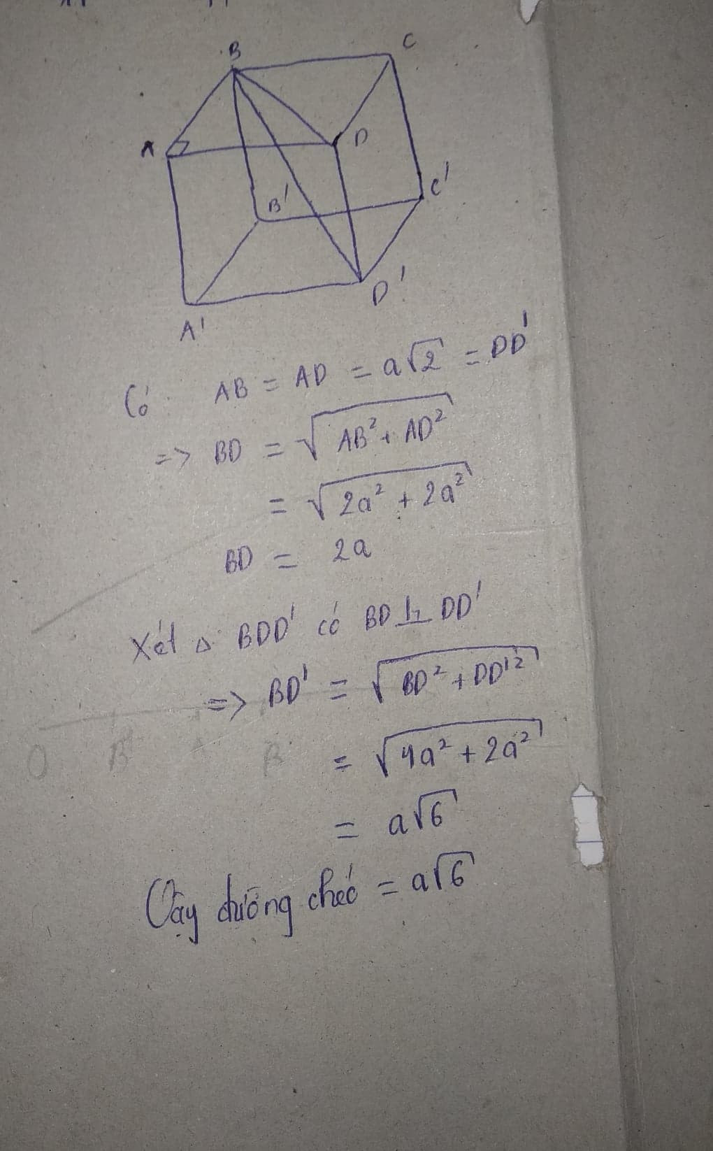Một hình lập phương có cạnh bằng a căn bậc 2 . Đường chéo của hình lập phương có độ dài bnh